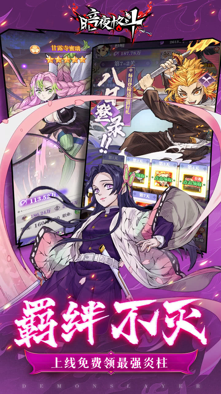 全新版本的鬼灭之刃在暗夜格斗的世界里面展现,大家能够在这款游戏中看到原版的剧情,能够认识之前的角色人物,每个角色人物的技能特点和属性都和动漫世界中的人物是一样的,让玩家沉浸式的走进鬼灭世界,这里面的剧情是需要玩家去进行探索的,相当于让我们重温当初的剧情,这里面的独特玩法也是需要玩家们去提高等级进行解锁的,现在你上线就能获取千抽,抽取到自己想要的角色人物哟!