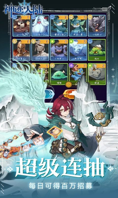 神迹大陆的游戏玩法非常简单,只需要简单的挂机操作就可以直接获取到游戏的奖励,让各种精彩的战斗和游戏内容全部完成,这就是挂机玩法所享受的快乐。游戏里还有大家最期待的开箱子玩法,无数的宝箱都可以为你开启,让你感受到开启宝箱,获得各种奖励的快乐。作为一款二次元游戏,最重要的的就是游戏里角色和画面的设计,精美的立绘和景色令人大饱眼福。